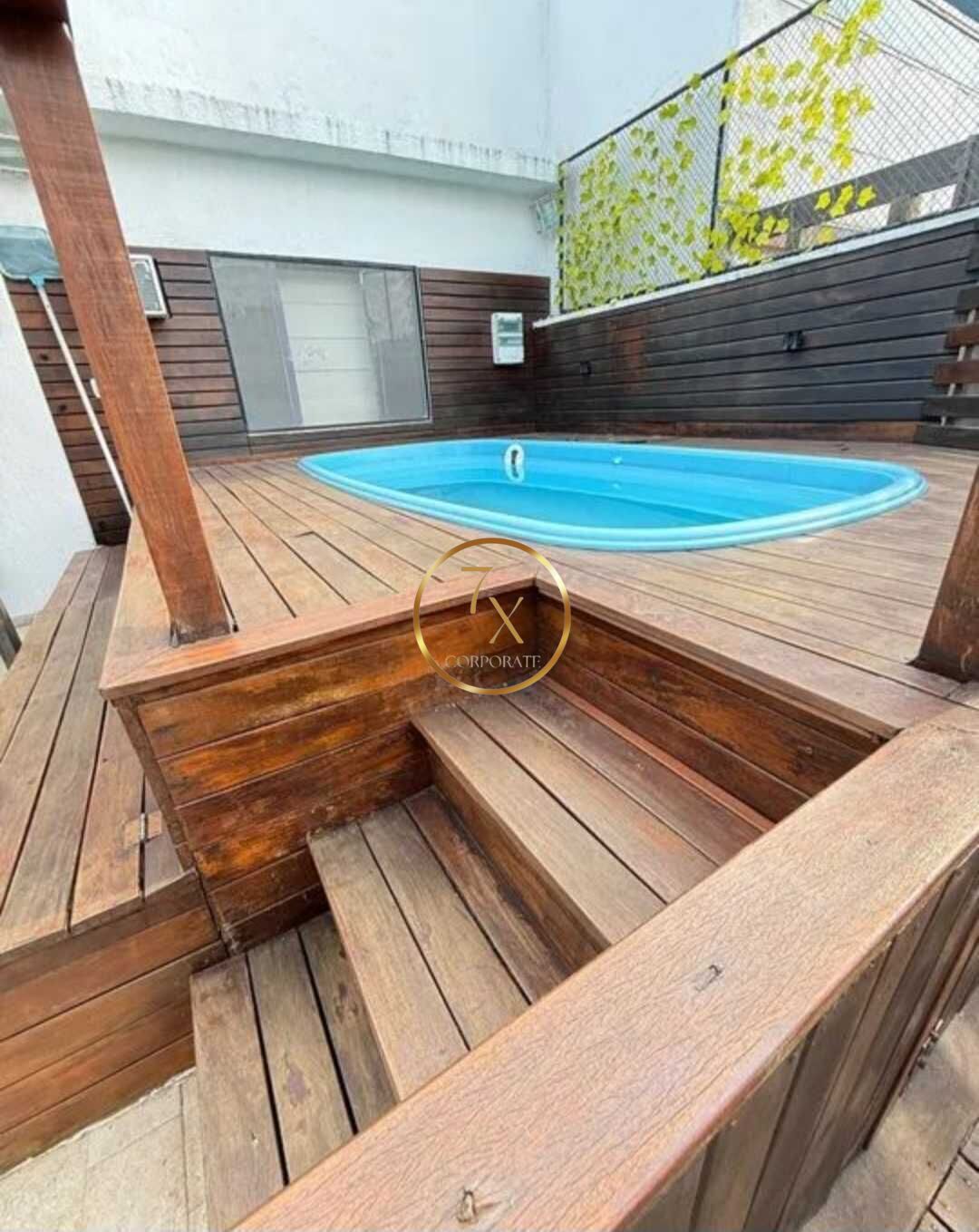 Piscina IGui com deck recém formado com iluminação .