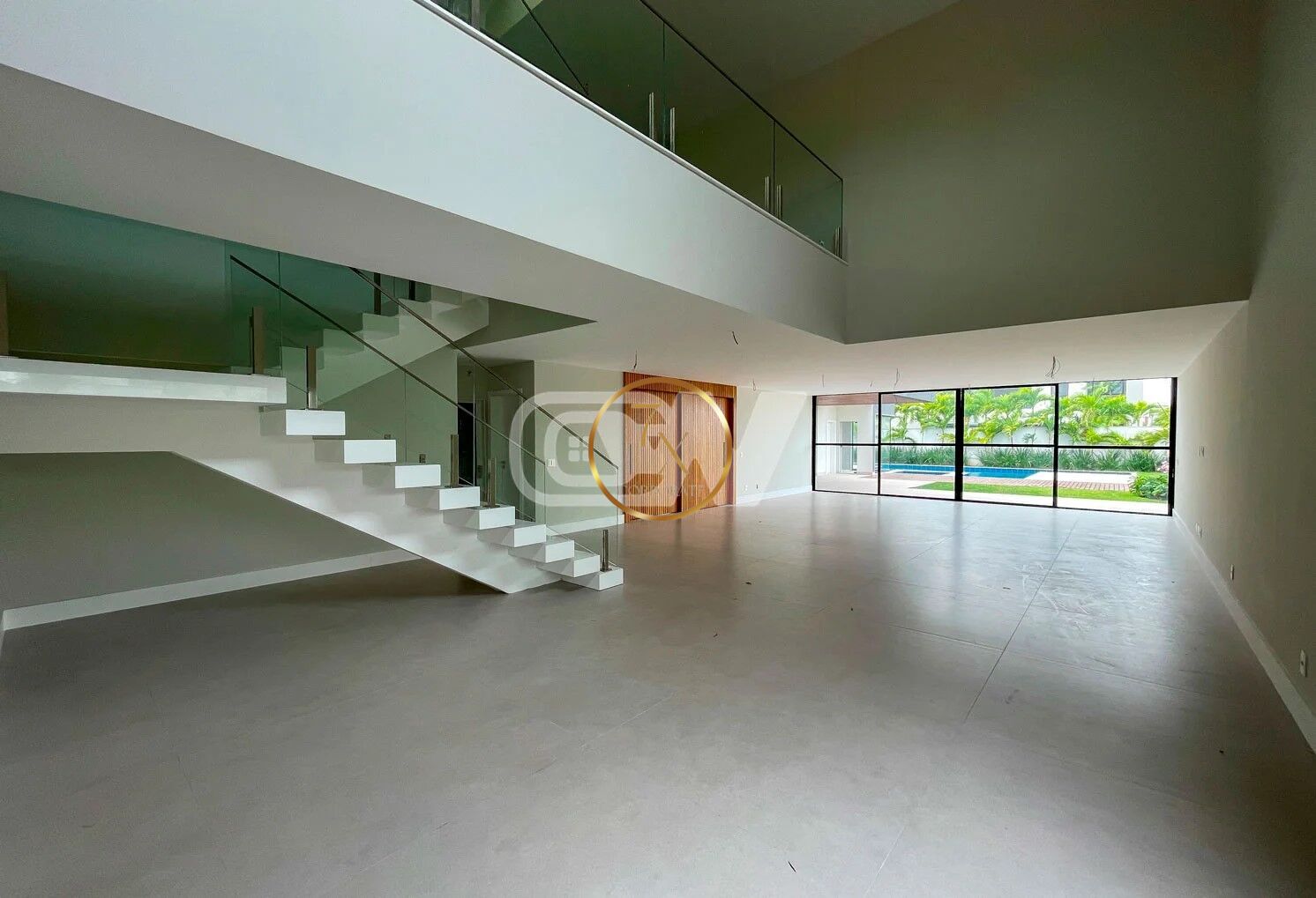 1º Pavimento: Hall de entrada com pé direito duplo, salão em vários ambientes, suíte térrea, elevador, ampla copa cozinha com ilha, área de serviço e dependência completa.